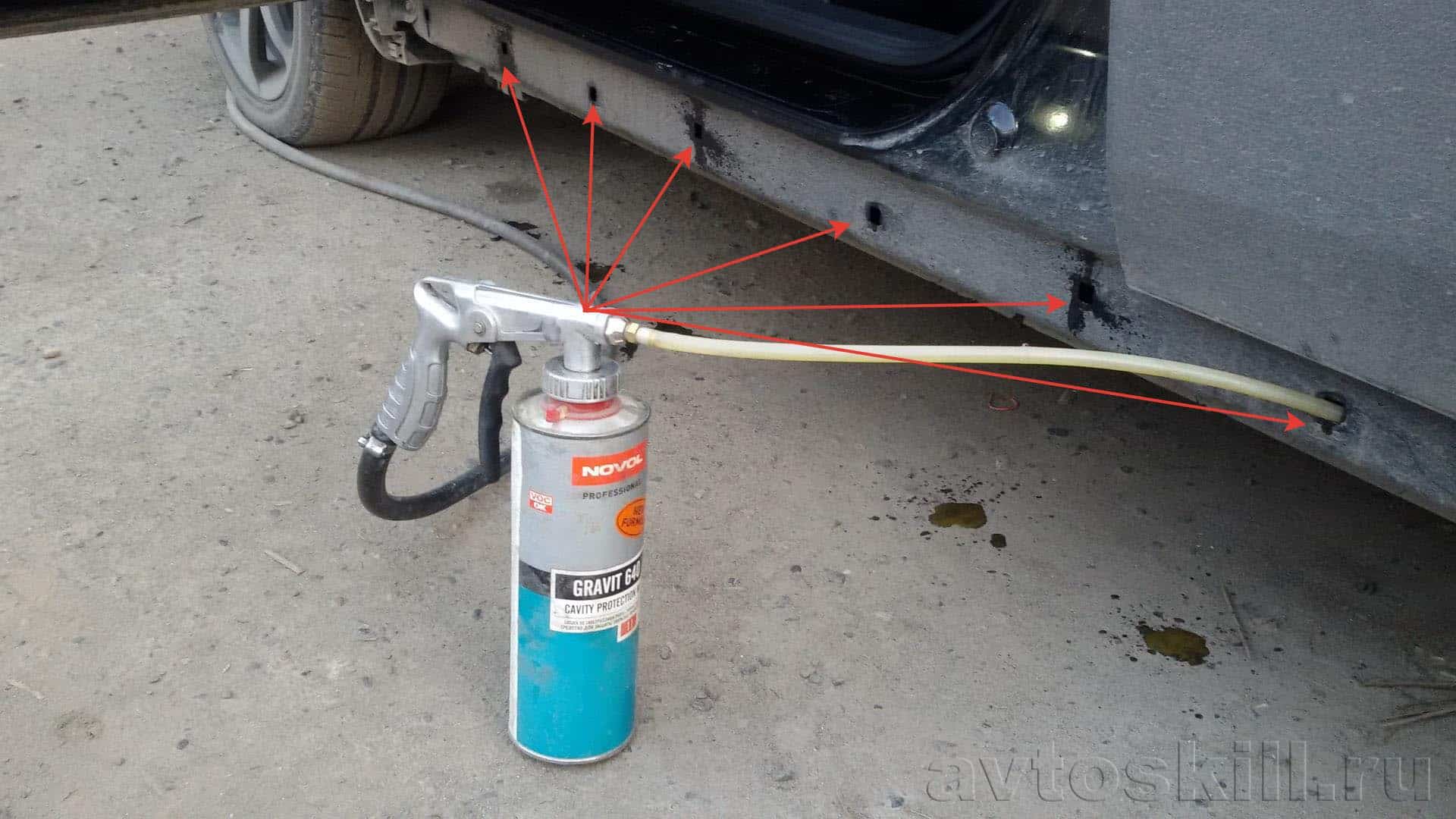 Это профессиональное оборудование воздушного распыления для нанесения антикоррозионных составов на восковой и масляно-восковой основах в скрытые полости автомобиля.