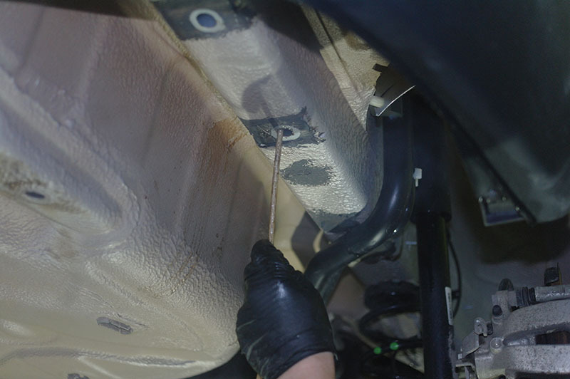 7. Этап – Обработка скрытых полостей кузова. Частичная разборка декоративных накладок на порогах, сверление дополнительных технологических отверстий.