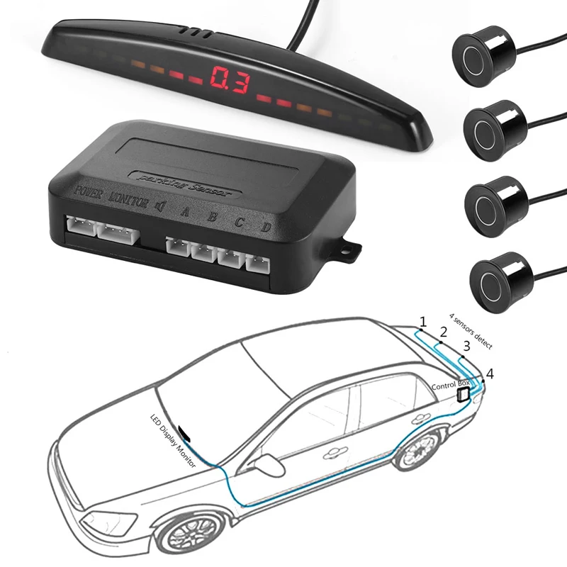 Система начинает работать, когда водитель включает передачу заднего хода. Но эти датчики, к сожалению, могут не заметить некоторые предметы, так как установлены далеко друг от друга. Поэтому рекомендуется устанавливать парктроники с 3 и 4 датчиками (устанавливаются на задний бампер на расстоянии 30-40 см друг от друга) – это самые распространенные парктроники, потому что они достаточно надежны и доступны по цене. Близко расположенные датчики всегда заметят «мёртвые зоны».