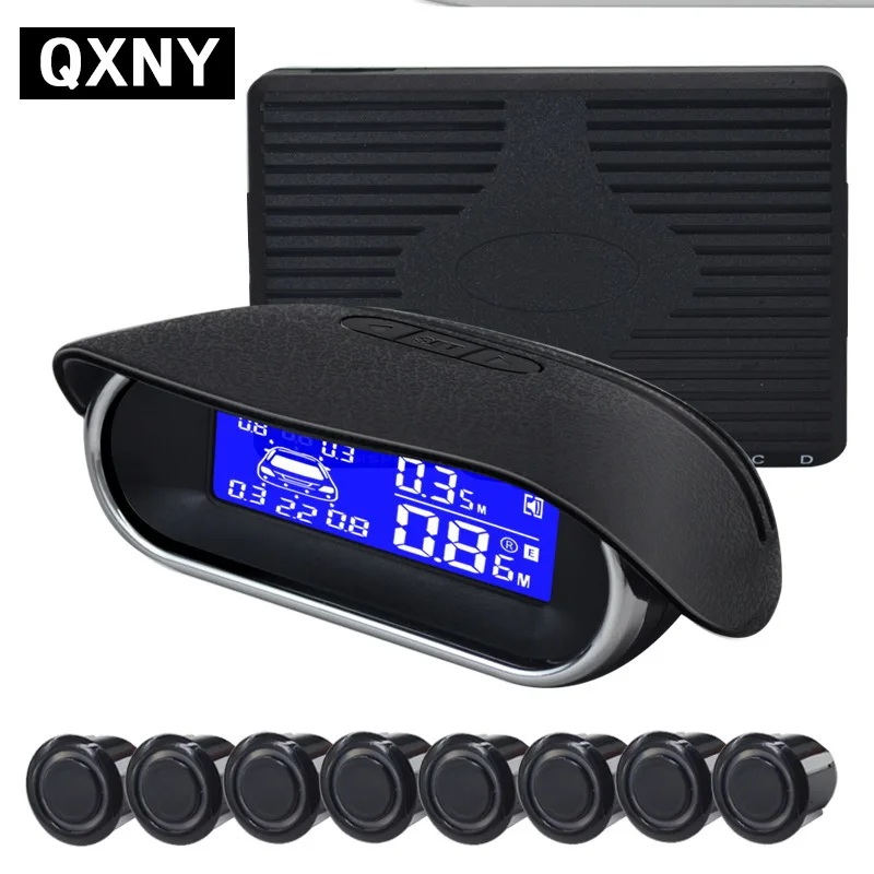 - ЖК-дисплей со схематическим изображением автомобиля и разбитыми на разноцветные зоны секторами контроля, а также с указателем дистанции до преграды по своей информативности близок к светодиодной шкале.