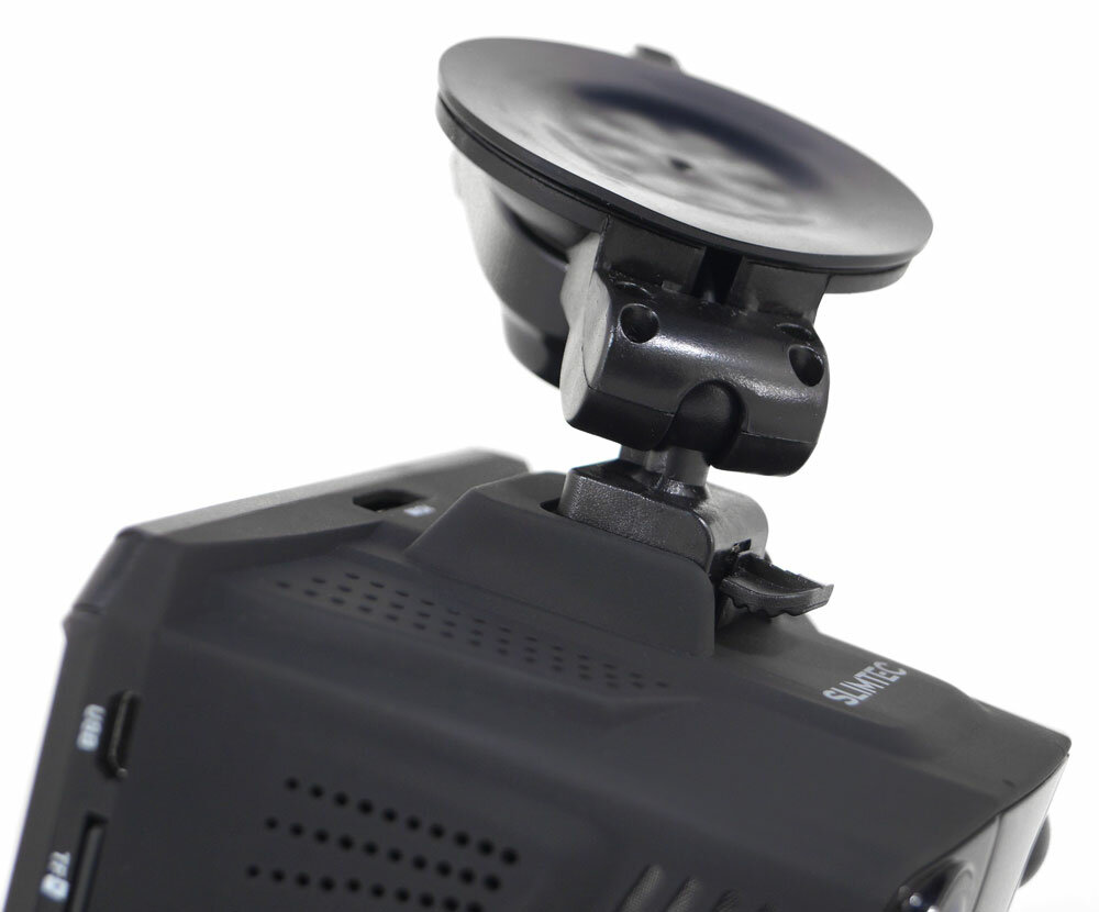 Знакомство. Перед нами мини-версия классического моноблока со встроенным экраном на 2 дюйма. Его можно спрятать за зеркало заднего вида или крепить на лобовое стекло привычным способом. Кнопки управления вынесены на боковые ребра. Поворотный механизм в креплении отсутствует, поэтому нажимать на клавиши придется вслепую. Из плюсов – сквозное питание через кронштейн и магнитный держатель. Если снимать камеру с держателя на время своего отсутствия, возится с проводами не нужно. Корпус отсоединяется от крепления одним движением руки.