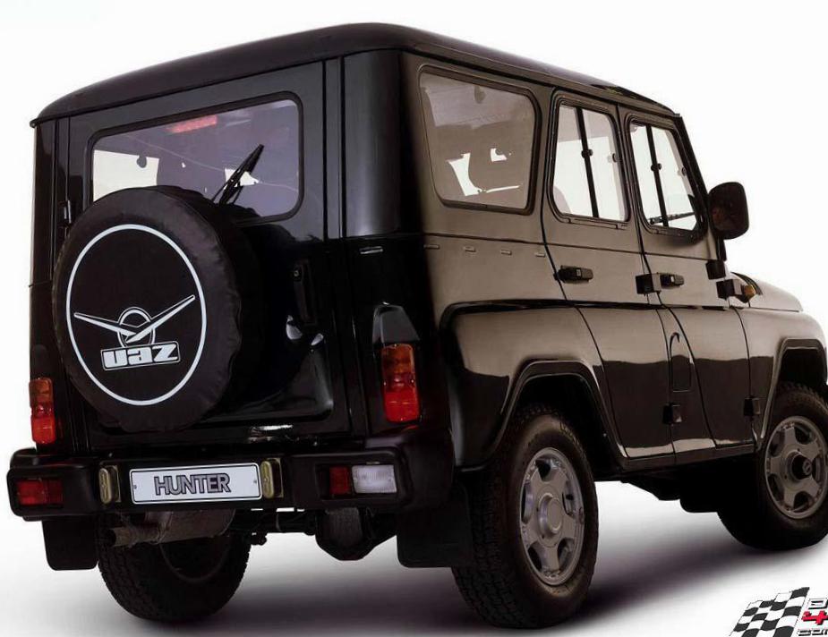 Галогенные лампы в передних фарах регулируются гидрокорректором. В Hunter установлены мосты «Спайсер» неразъемного типа, на передних колесах применены дисковые механизмы торможения, новый узел гидроусиления руля.