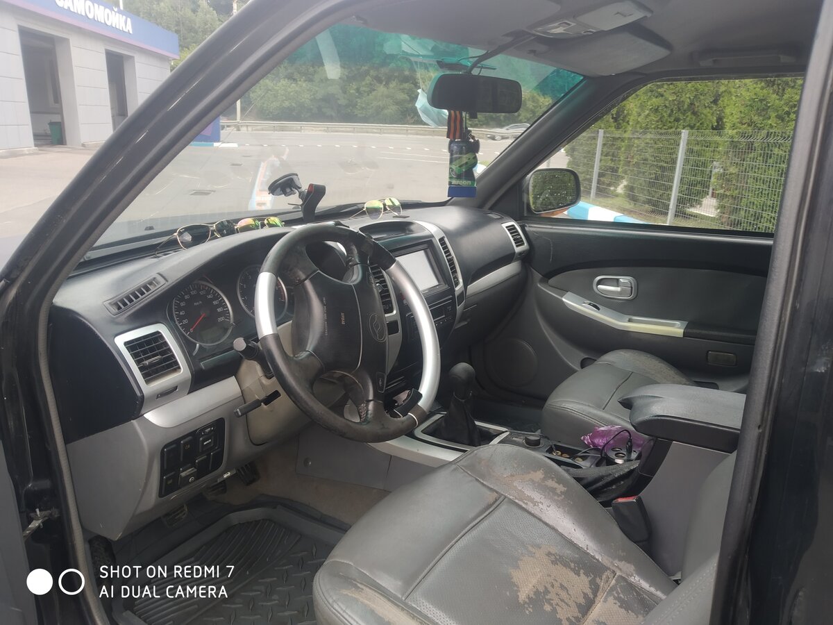 А так 140 кмч ненапрягаясь едит по сей день. Первое что очень понравилось это мгновенные тормаза. На скорости машину не бросает и не трясет. (Передняя подвеска независимая торсионная Задняя подвеска рессорная, зависимая Передние тормоза дисковые,вентилируемые Задние тормоза барабанные) Размер резины 235/65 R17 — можно поставить R19 подкрылки позволяют. 40% пластика — капот, бампера, крылья. Помимо крепкой несущей рамы, каркас автомобиля сделан из труб прямоугольго сечения, кузов оч. прочный не смотря на пластиковые детали. (На светофоре в зад въехала БМВ, у нее копот в гармошку у меня лишь обсыпалась краска на заднем бампере в месте удара, даже не прогнулся) Далее ощущения по бездорожью — привод полный, дорожный просвет 220, пожалуй позволяет себя прикрасно чувствовать и не боятся что либо задеть (первое время по неопытности переезжал бардюры при парковке). Центр тяжести не позволяет машине перевернуться на крутых склонах. Попал в ситуацию когда машину пришлось наклонить почти не знаю градусов 60 наверное, было страшно но машина уверено и крепко стояла на всех 4х4.