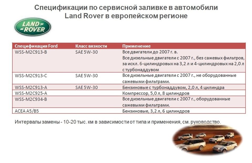 Допуски моторного масла Rover