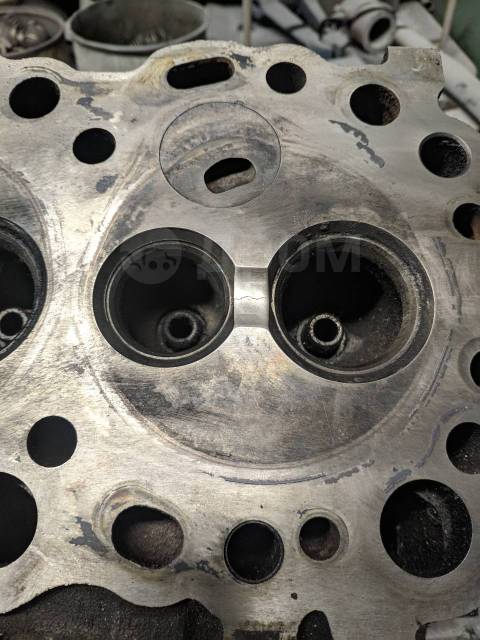 Еще одна распространенная проблема, возникающая вследствие перегрева и влекущая необходимость ремонта двигателя, это образование микротрещин. Но это больше относится к дизельным двигателям. Микротрещина в ГБЦ возникает обычно между клапанами, либо между отверстием для форсунки и клапанным гнездом. Зачастую такую микротрещину при визуальном осмотре обнаружить не удается, поэтому во время проверки головки эти места нужно тщательно осмотреть, предварительно как следует очистив поверхность от нагара. Можно провести по поверхности ГБЦ ногтем – если там имеется трещина, то ноготь за нее зацепится, пусть даже ее и не будет видно.