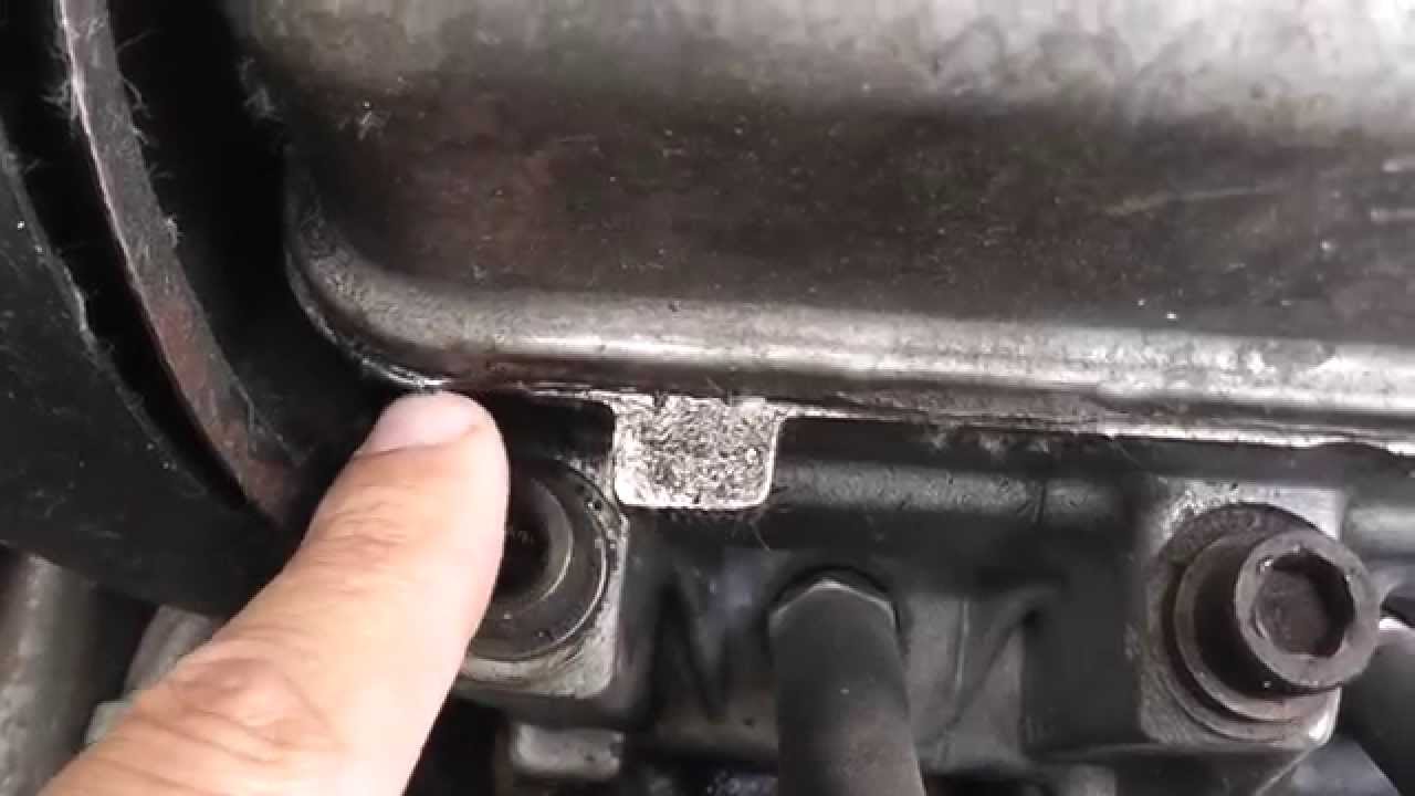 Используйте маленькое зеркало, чтобы увидеть скрытые области.При работающем двигателе ищите масло, выходящее из нижнего края крышки.Чтобы видеть, вам может понадобиться небольшое зеркало и фонарик.