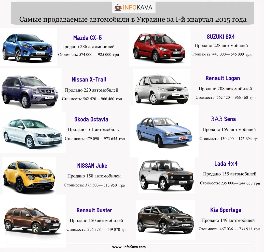 Первые места рейтинга заняли японские представители экономкласса. За ними следовали более привлекательные по цене и не менее надёжные представители США и Италии. Китайские авто в рейтинг не попали.