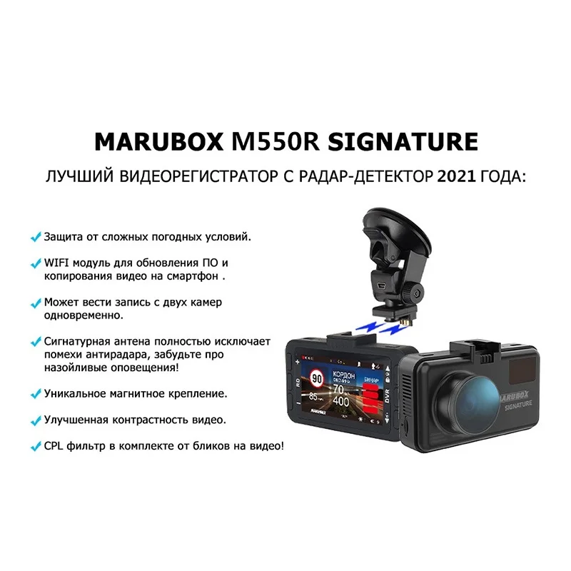 В такой комплектации видеорегистратор записывает происходящее вокруг в высоком разрешении, а радар-детектор улавливает сигналы и оповещает водителя и ситуации на дороге. Например, если на пути препятствие или ДТП.