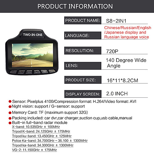 Детектор работает с частотами К, КА, Х. Некоторые современные «неуловимые» системы контроля дорожной ситуации определить данным устройством будет затруднительно. Присутствует светодиодная сигнализация на панели и звуковая, при помощи коротких сигналов. Максимальная дальность обнаружения составляет 300 метров. Для коротковолновых радаров, дальность будет еще ниже.