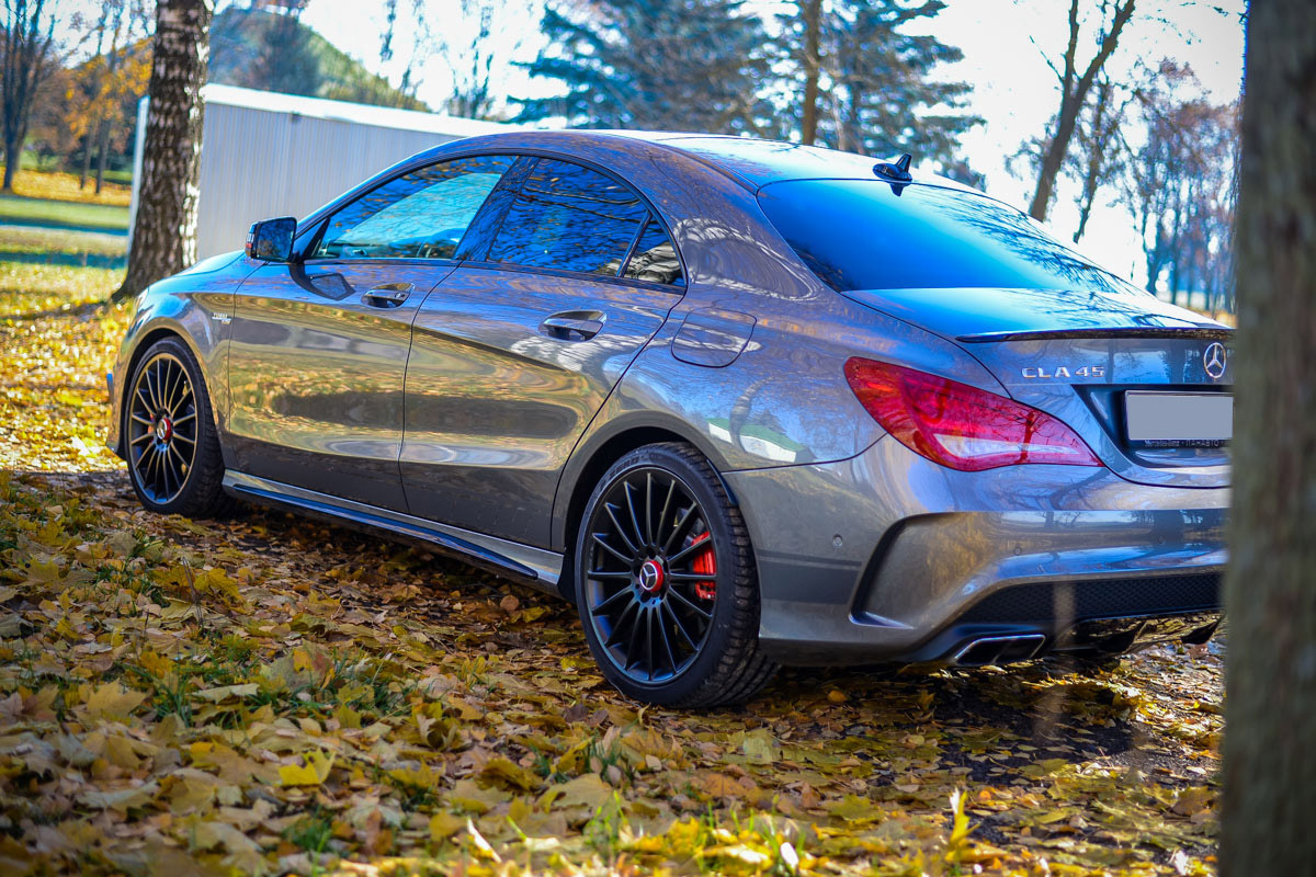 Заметно обостряется отзывчивость машины, прогнозируемость разгона и ощущение подхвата. При этом Мерседес не превращается в неврастеника, а остается верным комфорту. Даже на сверхнизкопрофильных покрышках размерности 225/40R18 CLA обладает завидной плавностью хода, легко справляясь с мелкими и средними колдобинами. А вот при проезде более крупных неровностей больше переживаешь не за подвеску, а за дорогущие диски и всё тот же AMG-обвес, находящийся всего в 125 мм от земли.