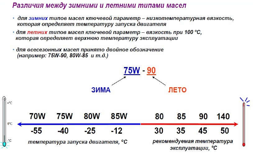 Классификация SAE разделяет масла по вязкости и температурным характеристикам. Зимние масла, для использования при низких температурах, имеют условное обозначение – буквой «W». К примеру, можно увидеть такое обозначение зимнего масла — 5W, 10W, это значит, что чем ниже указанное число, тем ниже температурный режим, при котором масло свободно будет смазывать поверхности, сохраняя свои свойства и качественные характеристики.