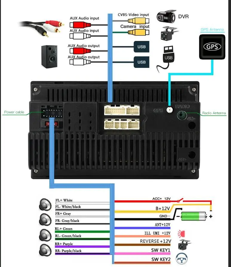 Схема подключения магнитолы 2 дин 7018B wilkYdin к автомобилю