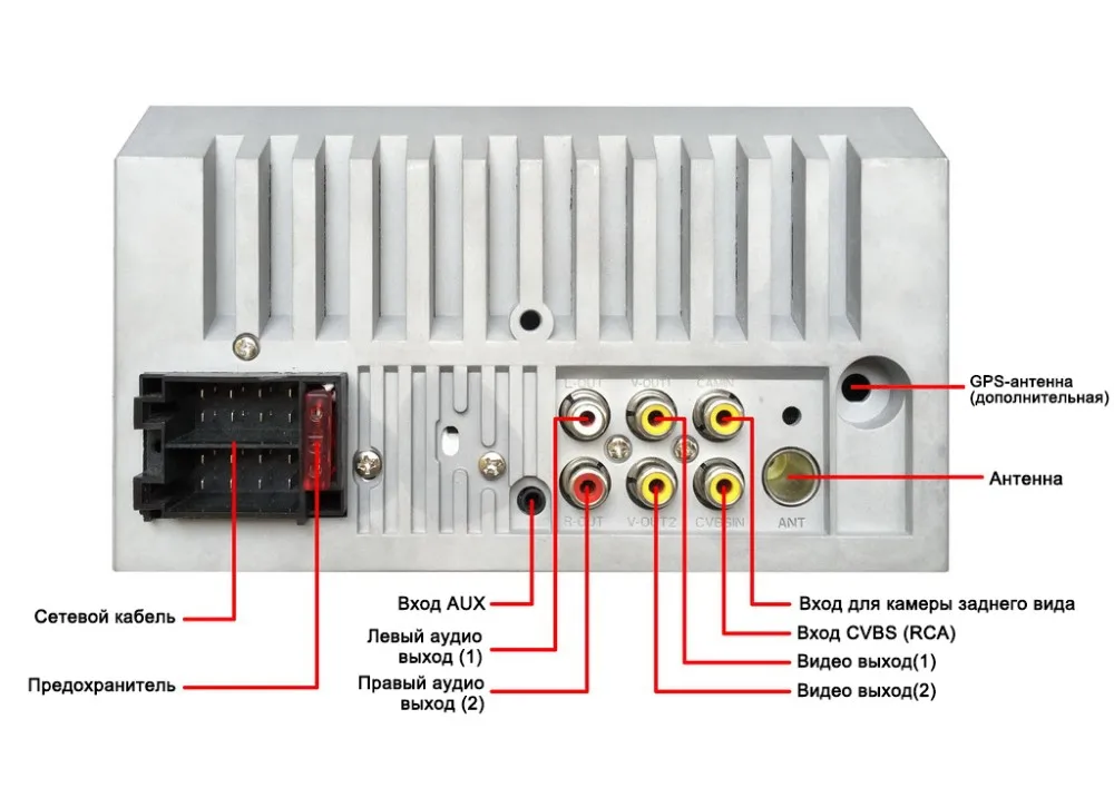 Схема подключения магнитолы типоразмера 2 дин является универсальной и подобна большинству других стандартных автомагнитол. Магнитола обладает стандартным универсальным разъемом ISO.