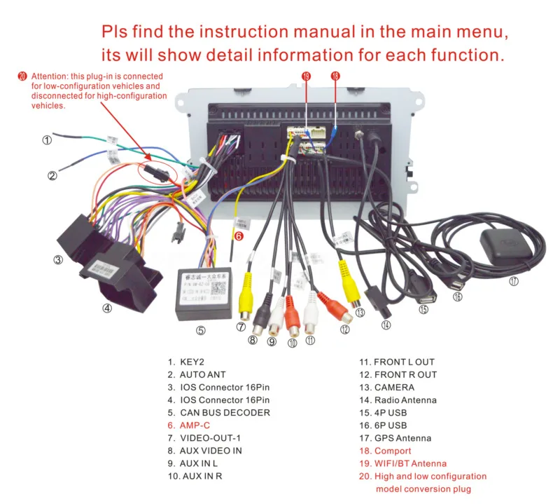1.1. Распиновка автомагнитолы 7018B wilkYdin (подключение)