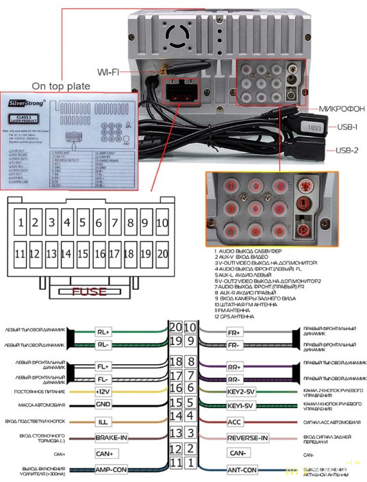 Распиновка автомагнитолы 7018B wilkYdin (подключение)