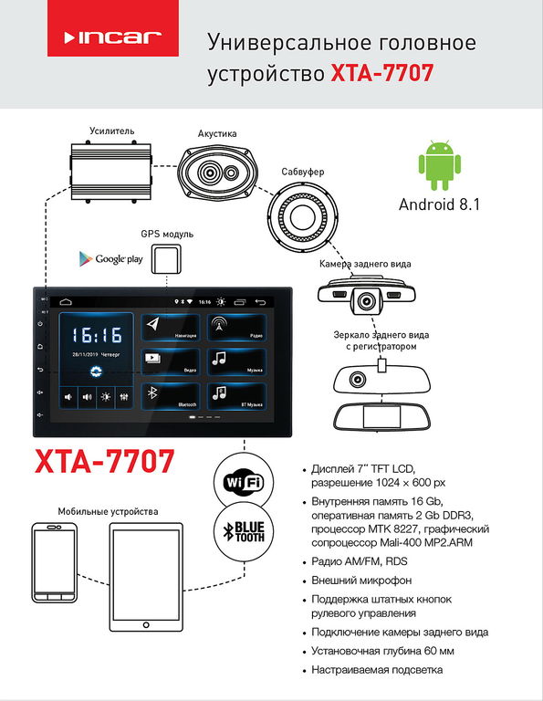 - Радиочип: MT6625/MTK (опция carplay 1+16)