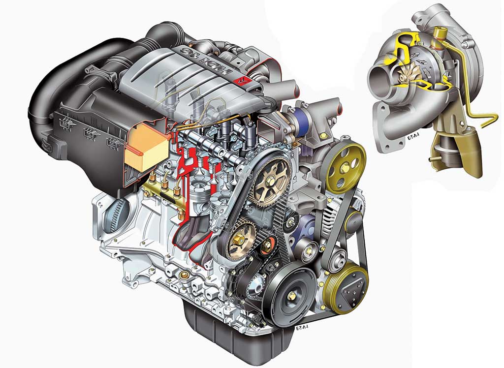 Турбонаддув идеально сочетался с рабочим циклом дизеля: воздух можно сжимать сколько угодно, ограничения по детонации больше нет, а большой коэффициент расширения — это еще и сравнительно невысокая температура выхлопных газов, особенно на промежуточных режимах, а значит, и щадящий режим работы турбокомпрессора.