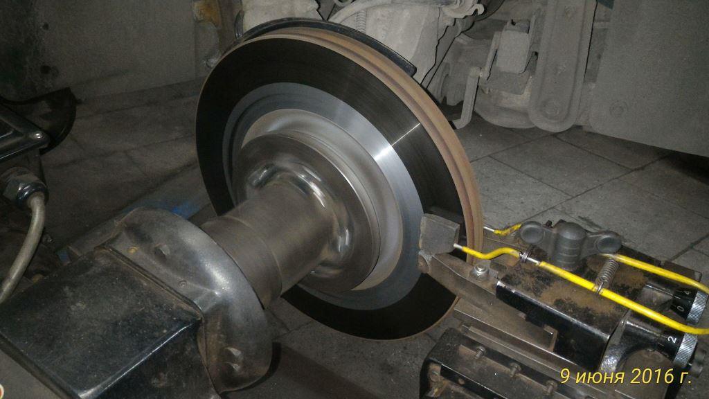Данная неисправность может наблюдаться лишь с одной стороны. Также стоит проверить колодки на предмет равномерности износа. Как это влияет на нашу ситуацию? Если наблюдается неравномерный износ, то при торможении машину тянет влево или вправо (в зависимости от износа). Проблема решается проточкой или заменой дисков.