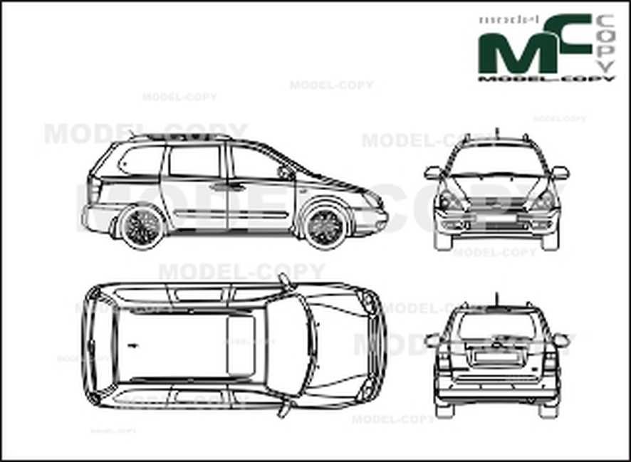 У него довольно футуристический внешний вид, квадратные фары, впечатляющие дневные ходовые огни, окружающие фары и решетку радиатора, и решетка радиатора с матовым серебристым отливом. Линии его кузова глубокие и острые для минивэна, и он поставляется с 17-дюймовыми или 19-дюймовыми колесами.-дюймовые колеса и система переднего привода.