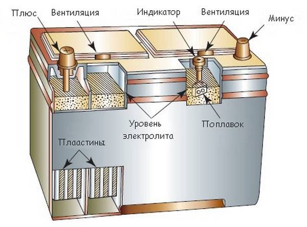 Устройство стартерных аккумуляторов
