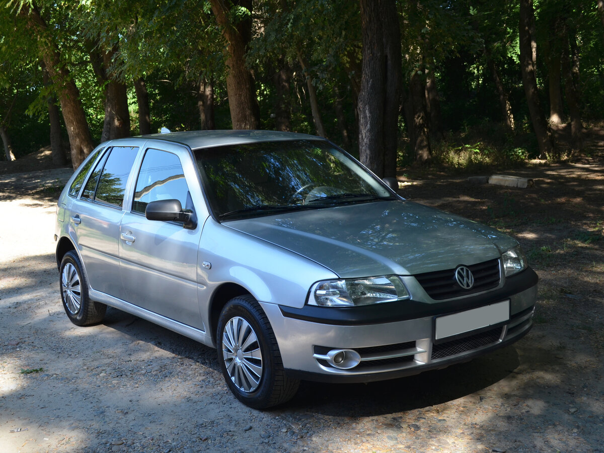 Volkswagen Pointer в оригинале носит имя «Gol» и появился на отечественном автомобильном рынке после презентации в 2003 году. Разработка модели велась бразильским подразделением компании. Она позиционируется как компактный, более дешевый и простой автомобиль для стран с развивающейся экономикой. Он получил довольно необычную компоновку агрегатов, простой и небольшой салон, а также довольно ненавязчивую внешность. Нельзя сказать, что модель выполнена в фирменном стиле. На передке красуются бесцветные прямоугольные фары головного освещения и слегка выступающая решетка радиатора. Она обладает трапецеидальной формой и получил логотип производителя. Под ней можно заметить вставку из неокрашенного пластика. На переднем бампере расположились круглые секции противотуманных фар и прямоугольный воздухозаборник.