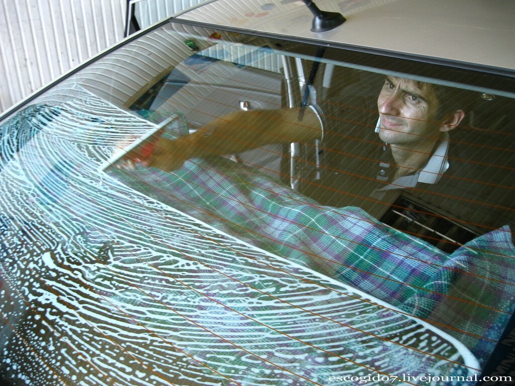 - Мойка автомобиля. Если машина грязная, лучше заранее её тщательно помыть. Можно и своими руками. Нельзя допускать, чтобы загрязнения с кузова и стёкол оказались под наклеиваемой плёнкой.